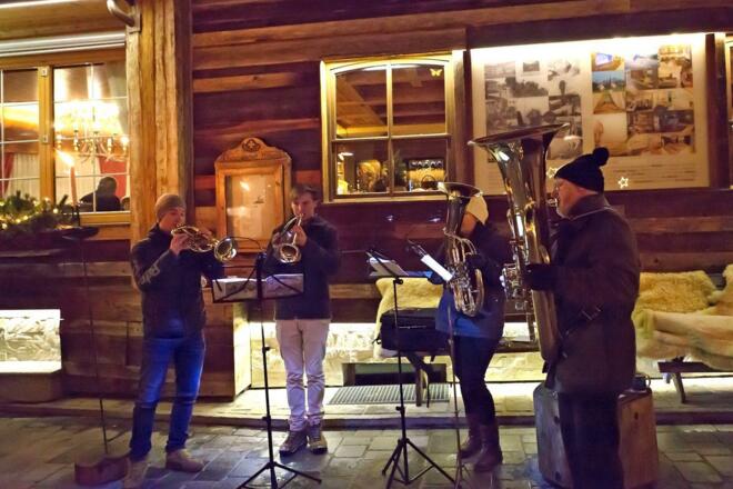 Um die besinnliche Atmosphäre beim Adventmarkt eine besondere Note zu verleihen spielen eigenes an jedem Adventmarktag die Weisenbläser auf.
