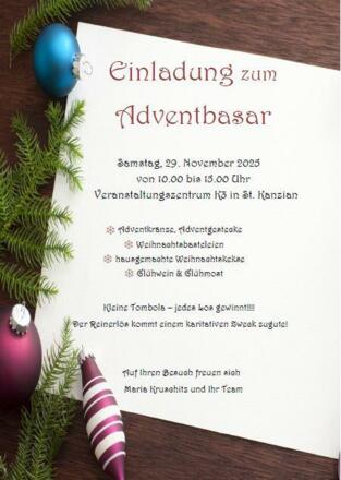 Verkauf von Adventkränzen, Gestecken und Weihnachtsbasteleien, hausgemachten Weihnachtskeksen