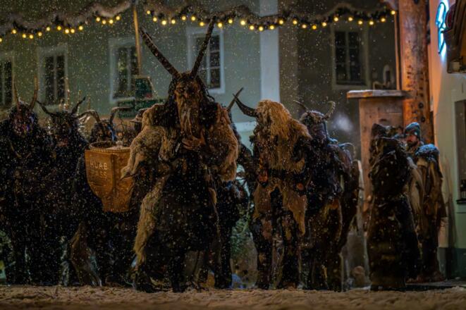 Einzelne Krampuspassen laufen ein und werden vorgestellt. Erleben Sie die faszinierende Krampus-Tradition mit furchterregenden Gewändern und beeindruckenden Masken, die oft mehrere Generationen weitergegeben wurden.