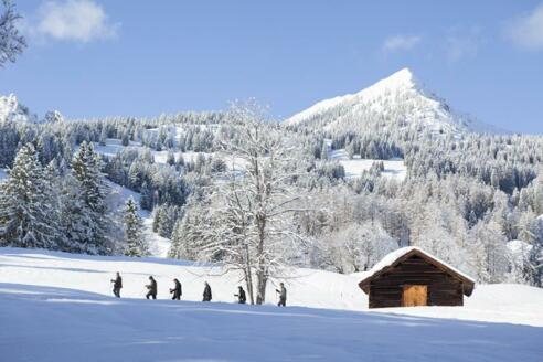Wenn im Tal die Lichter angehen, geht es mit den Schneeschuhen und Stirnlampen durch unberührte Natur und Abseits der Pisten zur Alpe Rona und weiter zu einem gemütlichen Gasthof. Nach einer Gehzeit von ca. 1,5-2 Stunden erreichen wir das gemütliches Gasthaus und genießen die original Vorarlberger Käsknöpfle.