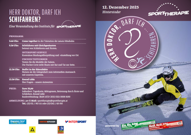 | Preisinformation | € 35,- inkl. Tageskarte, Mittagessen, Betreuung durch Ärzte und Skilehrer und Round table |