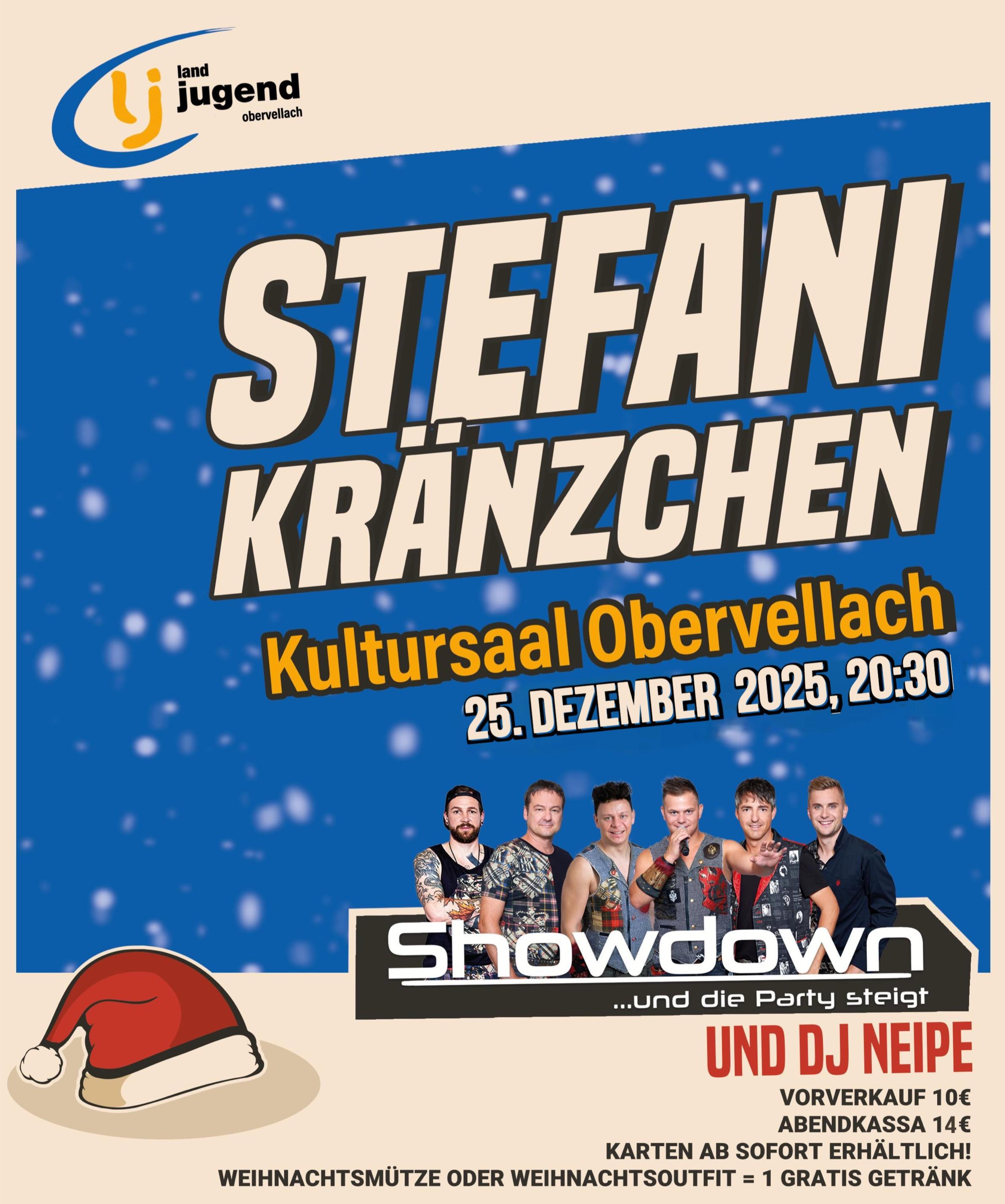 Die Landjugend Obervellach ladet zum Stefanikränzchen im Kultursaal Obervellach mit Unterhaltung von "Showdown" und DJ Neipe herzlich ein.