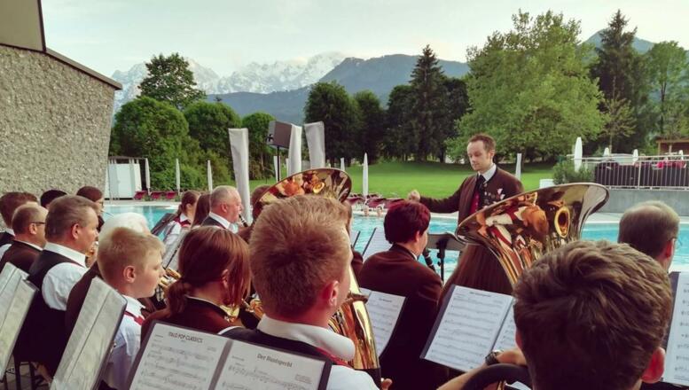 Das Sommerkonzert der Trachtenmusikkapelle Bad Vigaun findet im Außenbereich der Cafe Therme statt.