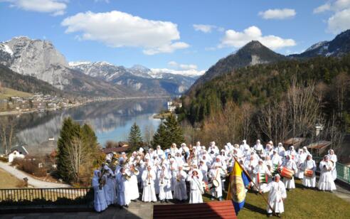 Männer, gekleidet in blütenweiße Nachtgewänder und Schlafhauben, leiten ihren Auftritt am Faschingmontag mit ohrenbetäubendem Lärm auf großen Trommeln und anderen "Instrumenten" ein. "Gestandene Mannsbilder" in Frauennachtgewändern der vergangenen Jahrhunderte wollen mit Trommeln und Trompeten den Winter aus dem Ort vertreiben. In früheren Zeiten war man der Meinung, dass Naturgewalten, wie z.B. der Winter, mit Lärm verjagt werden könnten.