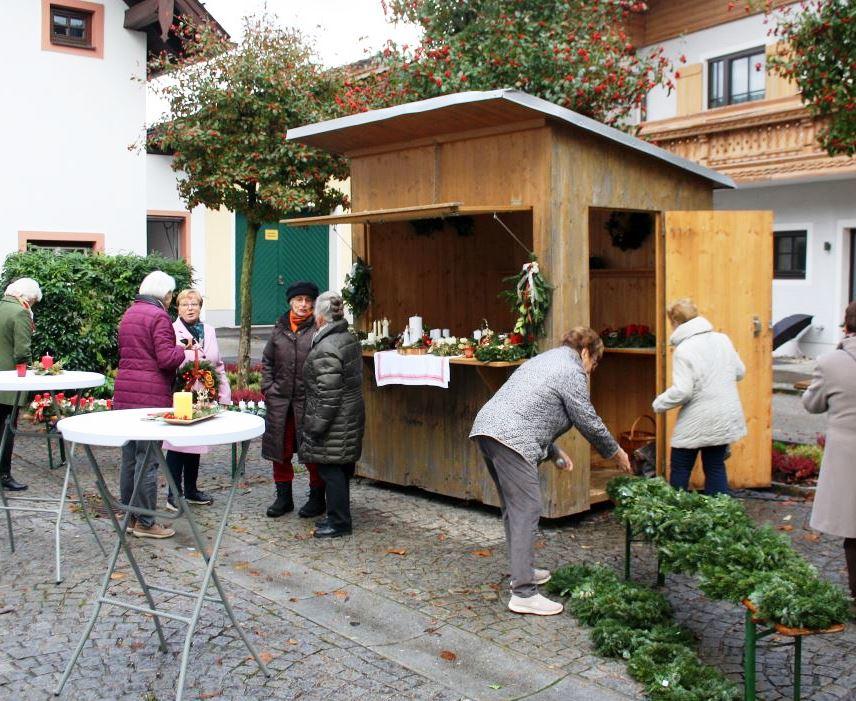 Selbstgebastelte Adventkränze, Türkränze und Gestecke - liebevoll handgemacht von den Trachtenfrauen und der kath.Frauenschaft Bad Vigaun