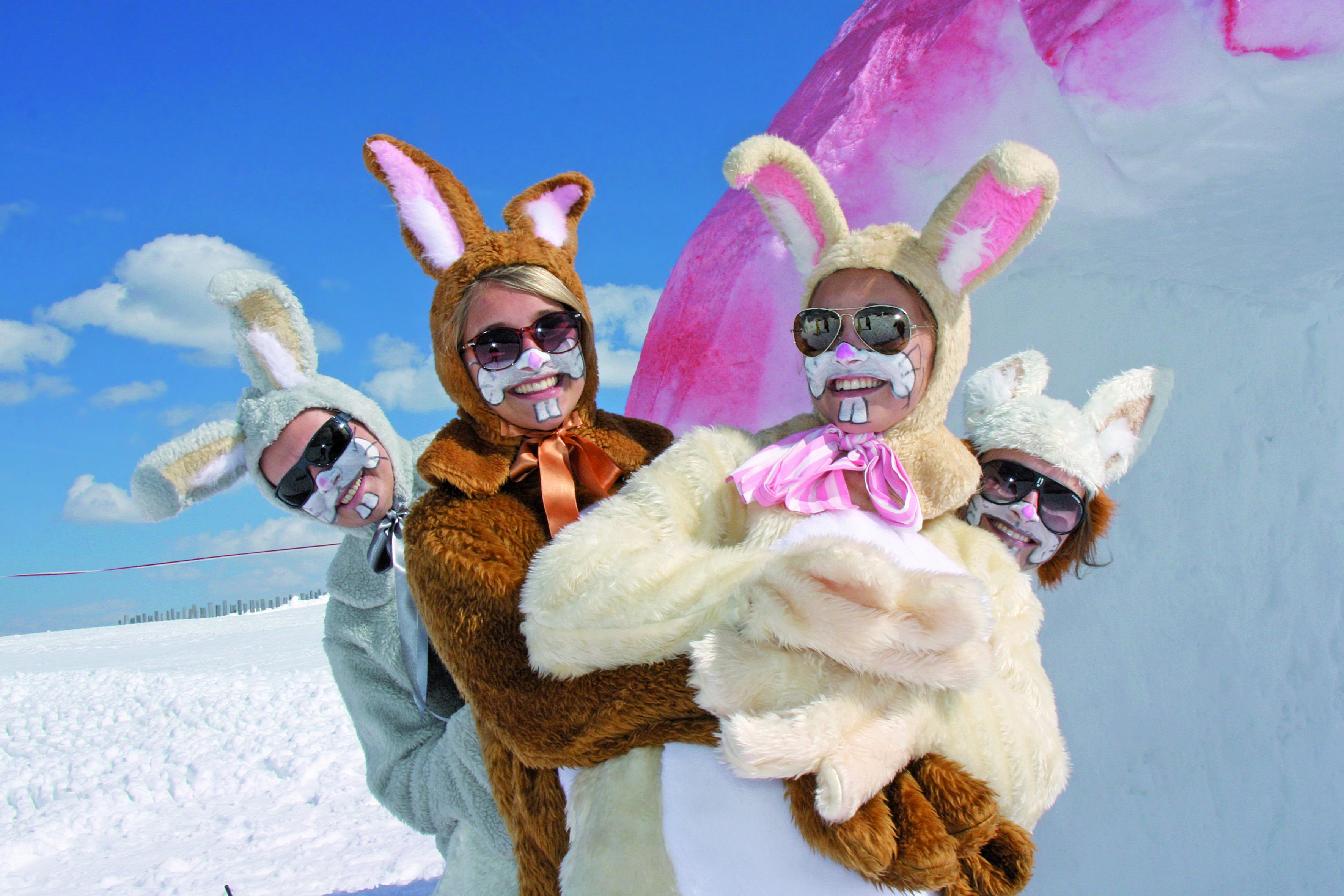 Bei der Osterhasen-Party schnallen sich lebensgroße Hasen Ski und Boards an. Zudem organisieren wir eine Osternest-Suche, eine spannende Rätselrallye, riesige Schneefiguren und eine Überraschung für alle Kinder.