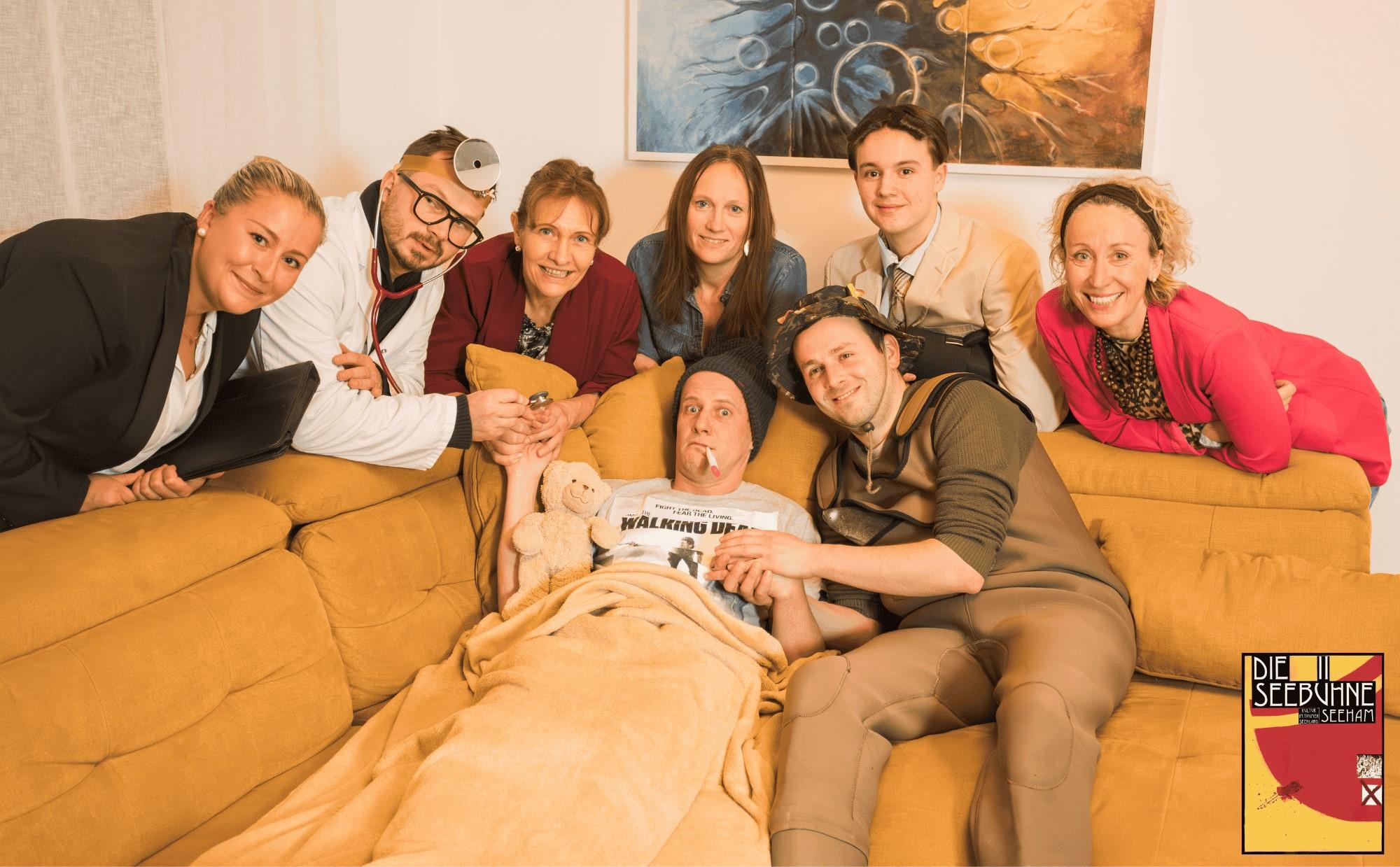 Aufführungsort: Festsaal der Volksschule Seeham, Wiesenbergstraße 3b, 5164 Seeham Zum Stück: Wenn ein Mann erkältet ist – ist es dann schon fünf vor Weltuntergang? Eigentlich wollten Anna und ihre beste Freundin Isabell ein gemütliches Freundinnen- Wochenende verbringen und Annas Ehemann Alex begibt sich mit seinem besten Freund zum Fischen. Doch dann erwischt Alex die gefährlichste aller Krankheiten: die Männergrippe! Sofort rückt eine ganze Rettungsbrigade an – Kumpel Thomas, die überfürsorgliche Mutter, ein überdrehter Arzt, ein misstrauischer Notar und sogar ein Bestattungsunternehmen. Plötzlich dreht sich alles um die Frage: Lebt er noch … oder stirbt er schon? Während Missverständnisse eskalieren und das Wohnzimmer zur Chaoszone mutiert, stolpern alle von einer Katastrophe in die nächste. Eine turbulente Komödie darüber, wie schnell aus einem Schnupfen ein Staatsakt werden kann.