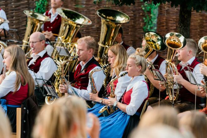 Kreativ inszeniert spielt eine der größten Salzburger Musikkapellen, die Trachtenmusikkapelle Altenmarkt, Open Air einen abwechslungsreichen Musik-Reigen von klassisch bis modern.