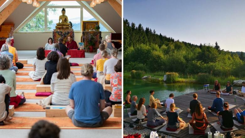 Bei schönem Wetter versammeln wir uns am Teich, bei schlechtem Wetter in der Meditationshalle, denn viele von uns wünschen sich mehr Gelassenheit im Alltag. Mitfühlend mit unseren Mitmenschen und offenherzig mit Situationen umzugehen, kann manchmal eine Herausforderung sein. Was ist der Schlüssel dazu, diese Qualitäten zu stärken? Wie können wir den Wunsch danach wahr werden lassen?