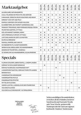 Unser Marktaufgebot mit den kulinarischen Specials ist abwechslungsreich und frisch wie der Frühling.