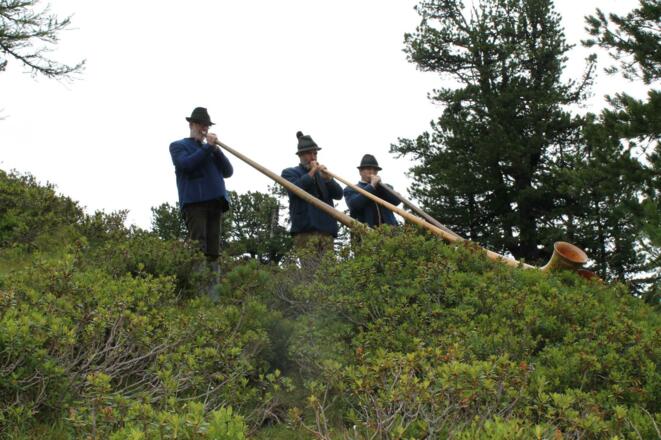 Der Wandertag wird mit Alphornklängen begleitet.