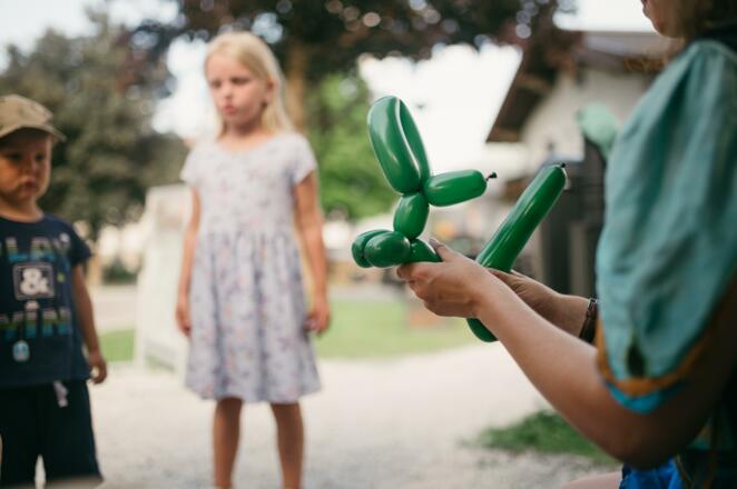 Aber das ist noch nicht alles! Zusätzlich gibt es wöchentlich abwechselnd lustige Luftballontiere oder Riesenseifenblasen, die zum Platzen gebracht werden.
