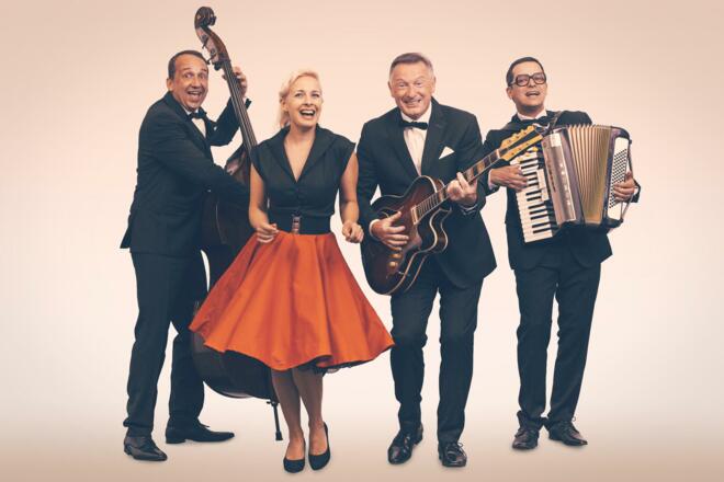 Die vierköpfige Musikgruppe hat ein eigenes Drehbuch für einen wunderbaren Fernsehabend geschrieben, bei dem Sie unglaublich klingende Nachrichten, skurrile Werbeunterbrechungen, legendären Shows, jede Menge Witz und gute Laune sowie natürlich die großartigen Schlager dieser Zeit erleben dürfen. Egal ob „Die Liebe ist ein seltsames Spiel“, „Mit 17 hat man noch Träume“, „Capri Fischer“….die großen Hits von gestern lassen auch heute noch unsere Herzen höher schlagen.