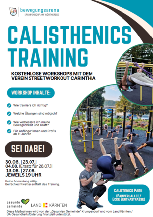 kostenlose Trainingsworkshops mit dem Verein Streetworkout Carinthia