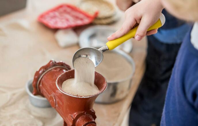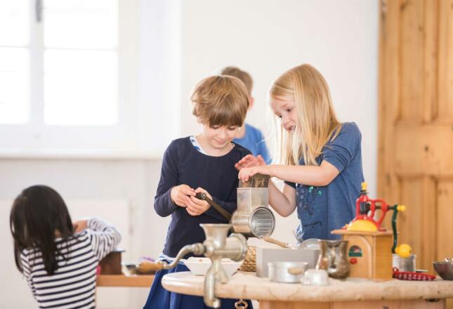 Beim Strandgut haben Kleinkinder die Möglichkeit in einem eigens eingerichteten Raum ungestört mit dem Sand zu experimentieren. Der Sand darf rieseln - nach Herzenslust! Es kann gekocht, geschöpft und natürlich auch Sand-Kaffee oder Sand-Suppe zubereitet werden.