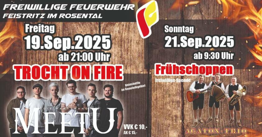 Die Feuerwehr Feistritz im Rosental lädt Euch herzlich zu unserem Fest-Highlight „Trocht on Fire“ ein!