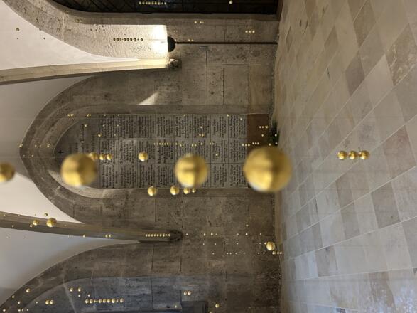 Die begehbare Installation ist im Kapellenkranz der Krypta des Mariendoms platziert und stellt so räumliche Bezüge zum Musikstück her, das anlässlich der Weihe der Votivkapelle uraufgeführt wurde. Die Arbeit lädt ein, in den Noten-Kosmos von Anton Bruckner einzutauchen und diesen auf sinnlich-visuelle Weise zu erfahren.