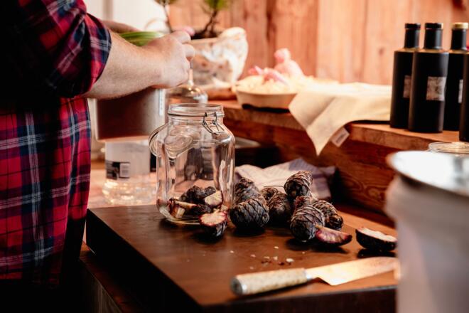 Mach mit bei der Zirbenlikörherstellung und -verkostung mit Christopher Obermoser.