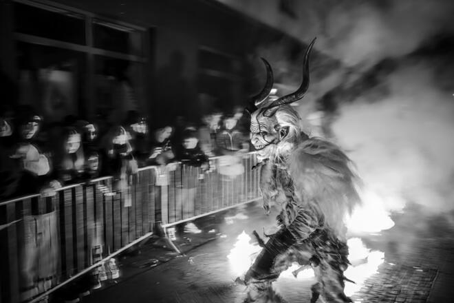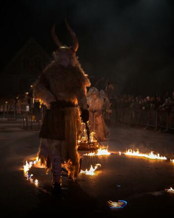 Um 16:30 Uhr beginnt dann der eigentliche Krampuslauf. Dabei ziehen die „echten“ Krampusse durch die Straßen und bringen die Zuschauer mit ihren furchteinflößenden Masken und Kostümen ins Staunen. Die teils schaurigen Gestalten verkörpern den winterlichen Brauch, der für Mutige und Schaulustige jedes Jahr ein faszinierendes Spektakel bietet. Die Krampusse sorgen mit lautem Glockengeläut und wilden Bewegungen für eine packende Atmosphäre, die besonders in der Dämmerung für große Augen und unvergessliche Eindrücke sorgt.