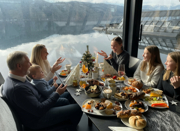 Starte festlich in den Tag - mit unserem Weihnachtsfrühstück im beheizten Wintergarten direkt an der Waterfront.