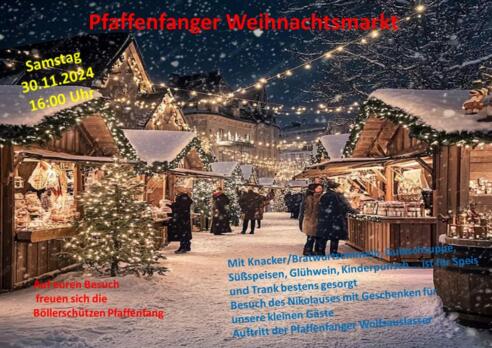 Pfaffenfanger Weihnachtsmarkt am Samstag 30.11.2024 ab 16 Uhr.