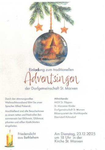 EINLADUNG zum traditionellen ADVENTSINGEN der Dorfgemeinschaft St. Marxen
