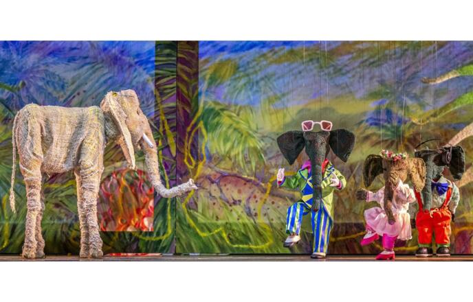 Die vom kleinen Elefanten Babar (nach dem Kinderbuch von Jean de Brunhoff, Musik von Francis Poulenc), der in eine Stadt flieht und Gefallen am Leben der Menschen findet;