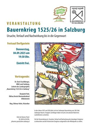 Der Salzburger Bauernkrieg von 1525 zählt zu den bedeutendsten sozialen Erhebungen im mitteleuropäischen Raum. In diesem Vortrag werden die Ursachen, der dramatische Verlauf sowie die weitreichenden Folgen des Aufstands beleuchtet. Im Fokus stehen die Rollen von Gewerken, Knappen, Bauern und Bürgern, die sich gegen politische und wirtschaftliche Unterdrückung erhoben.