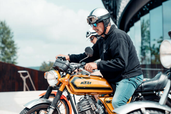 Besuche uns am Samstag, den 8. Juni 2025 von 09.00 bis 18.00 Uhr mit deinem Oldtimer und parke exklusiv am Vorplatz der KTM Motohall. Alle Besucher, die mit einem Oldtimer anreisen, erhalten 30% Ermäßigung auf den Eintritt in die Ausstellung.