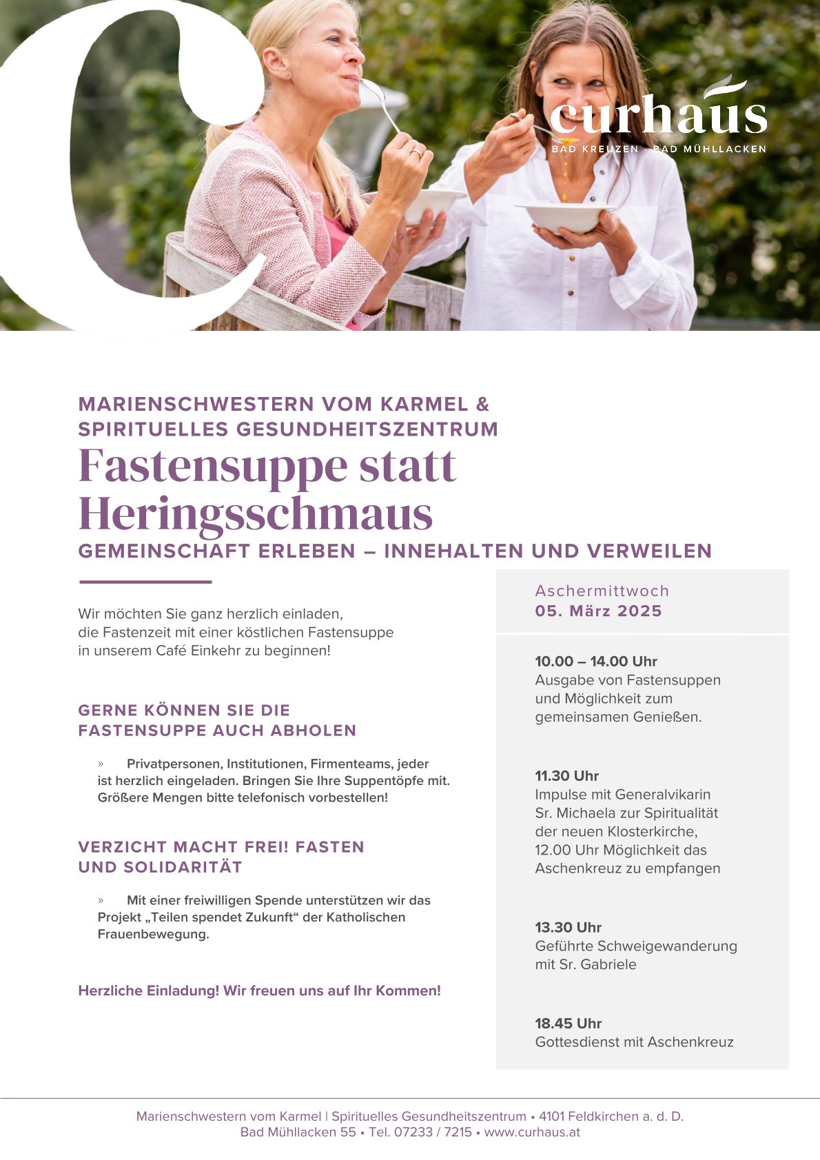 Ausgabe von Fastensuppen und Möglichkeit zum gemeinsamen Genießen.