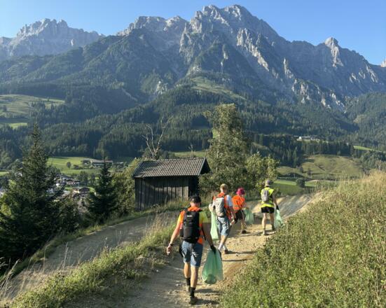 Einteilung der Teams & Strecken - Verteilung der Müllsäcke & Handschuhe - Auffahrt zur Mittel-/Bergstation - Gemeinsames Einsammeln von Müll.
