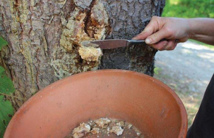gemeinsames Ernten des Pech´s (auch Harz genannt), anschließend lernen Sie die Verarbeitung zu einer Salbe!