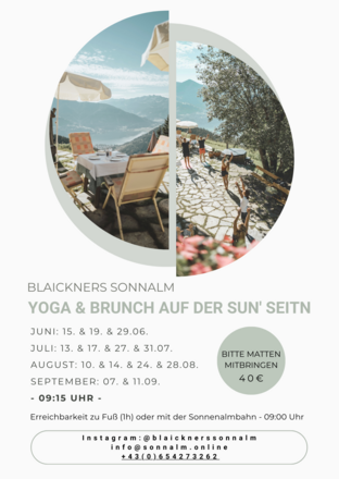 Nach der Yoga-Praxis verwöhnt dich ein herzhaftes Brunch-Buffet mit regionalen Köstlichkeiten, liebevoll zubereitet von der Familie Blaickner.
