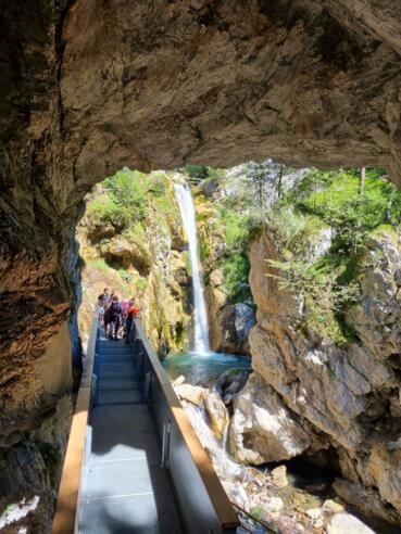 Zuerst geht es gemütlich am Loiblbach entlang, bis nach dem Goldenen Brundl die eigentliche Schlucht beginnt. Bestens gesichert geht es über Leitern, Stufen und Brücken zum ersten von 3 Wasserfällen. Eine Brücke und eine Wendeltreppe führen direkt neben dem ersten Wasserfall nach oben, wo unterhalb der Loiblpass Straße der zweite Wasserfall erreicht wird. Über eine kühn angelegte Hangebrücke erreichen wir den tosenden Tschaukofall, eine spektakuläre Aussichtsplattform und ein gewaltiges Felsentor. Nun folgen wir dem Naturlehrpfad "auf den Spuren des Dr. Peter Tschauko". Zahlreiche Schautafeln informieren uns über die Fauna und Flora des Loibltals. Vorbei an der erfrischenden Elfenquelle und dem Liebes-Platzl erreichen wir schließlich den traditionsreichen Gasthof "Deutscher Peter". Nach einer wohlverdienten Rast fahren wir wieder zurück an den Wörthersee. Der Höhenunterschied betragt ca. 200 m, die reine Gehzeit ca. 2 Stunden.