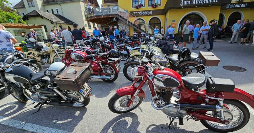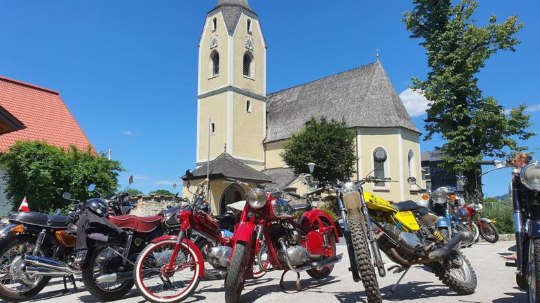 Beim jährlichen Treffen aller Liebhaber des Zweiradherstellers "Puch" können die Besucher beim Hotel Gasthof Kirchenwirt über 100 Oldtimer Modelle aus ganz Österreich und dem benachbarten Bayern bestaunen.