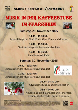 - Auftritte der Jungmusiker und LMS Alberndorf mit Kuchen und Kaffee im Pfarrsaal