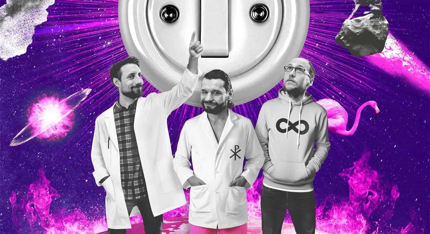Die Science Busters präsentieren 'Weltuntergang für Fortgeschrittene', eine humorvolle Wissenschaftsshow, die das Ende des Universums und andere große Themen behandelt. MC Martin Puntigam, Dr. Florian Freistetter und Dr. Martin Moder führen durch den Abend mit Experimenten und Witzen.