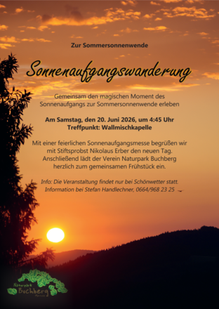 Sternwanderung zur Wallmischkapelle, wo Stiftsprobst Nikolaus Erber mit einer feierlichen Sonnenaufgangsmesse den neuen Tag begrüßt.