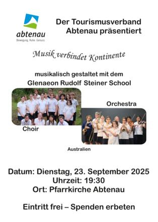 Die Schüler der "Glenaeon Rudolf Steiner School" verzaubern Sie mit ihren Streichern und ihrem Gesang in der Pfarrkirche Abtenau.