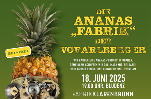 Sei dabei. Mach mit bei der Ananasfabrik der Vorarlberger. Getrocknete, faire Bio-Ananas aus Uganda.