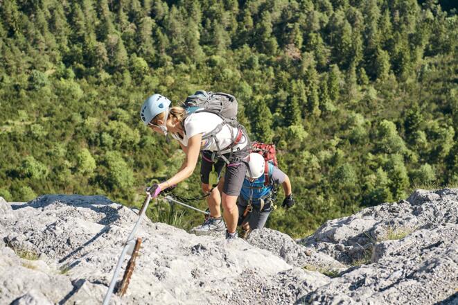 Gemeinsam mit einem Guide geht’s auf in ein tolles Klettersteig-Abenteuer. Der Klostertaler Klettersteig beim Fallbach lässt dabei keine Wünsche offen.