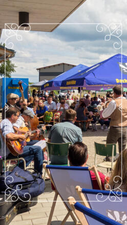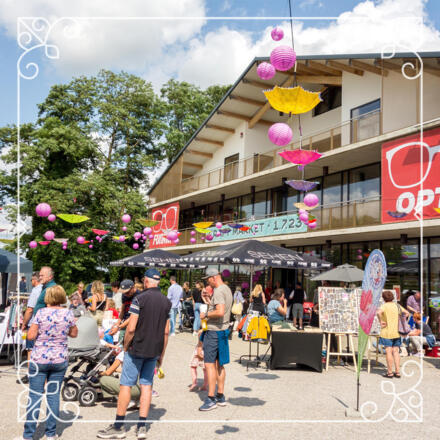 Gemütliches Markttreiben bei live Musik von "Grünstreifen Musik" und Beisammensitzen in schattigen Lounge-Ecken. Die gläserne FUNK Brillenmanufaktur bietet über den Tag kostenlose Führungen an.
