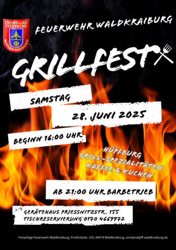 Auch dieses Jahr veranstaltet die Freiwillige Feuerwehr Waldkraiburg ihr jährliches Grillfest im Gerätehauses in der Prießnitzstraße.