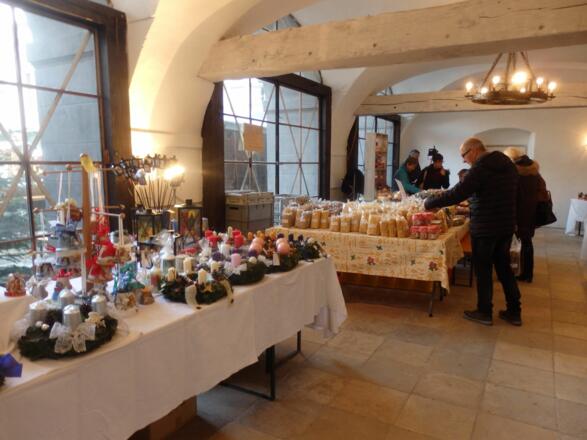 Genießen Sie Punsch, Glühwein, gebratene Maroni und viele Köstlichkeiten mehr im wunderschönen Innenhof des Schlosses. Der Schlosskeller bietet Kaffeehaus mit hausgemachter Mehlspeise und eine Vinothek Das Angebot unserer vielen Aussteller ist vorwiegend selbstgemacht und reicht von Weihnachtsbäckerei und Eingekochtem bis hin zu Handarbeiten aus Keramik, Textil, Glas, Holz, Wachs und Metall, Dekor und Weihnachtsgestecken.