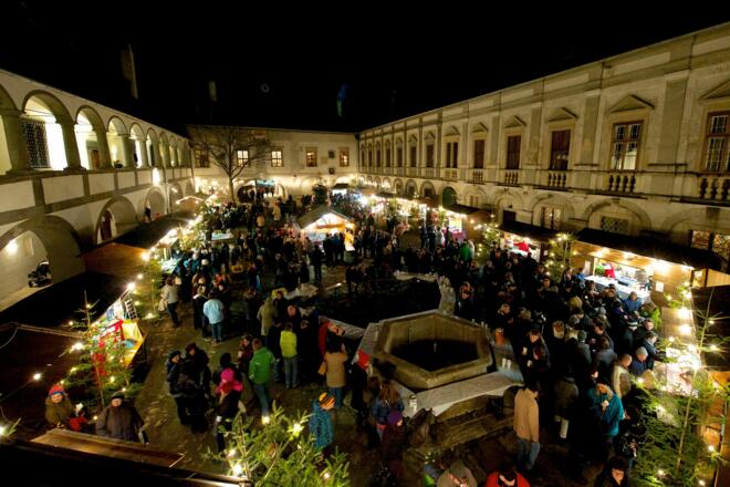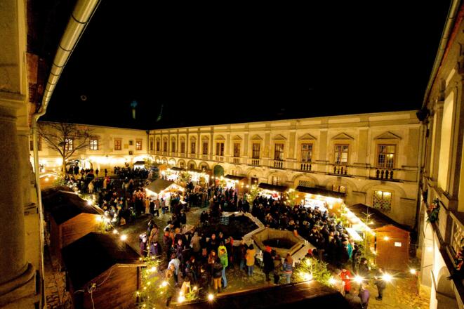 Am Samstag erwartet die Besucher ein stimmungsvolles Programm mit einem feierlichen Auftakt durch die Kindergartenkinder und die Gemeinde. Der Nikolo schaut gleich zweimal vorbei und bringt Kinderaugen zum Leuchten. Das Christkind liest im Blauen Salon besinnliche Geschichten vor, während eine spektakuläre Feuershow im Schlossgraben für Staunen sorgt. Außerdem kann die historische Synagoge besichtigt werden.