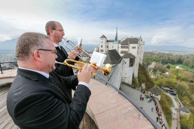 Turmblasen vom Trompeterturm der Festung Hohensalzburg