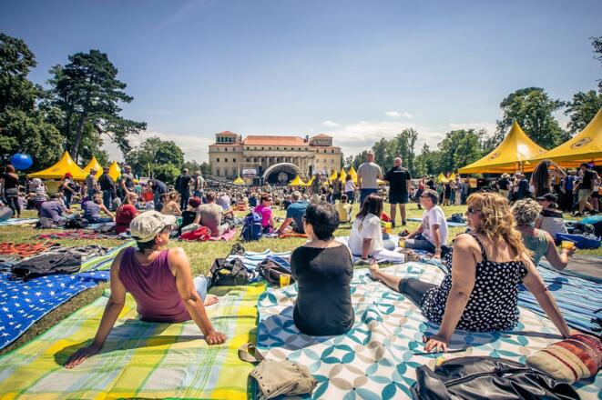 Das Festivalgelände rund um die altehrwürdigen Gemäuer des Schlosses Esterházy bietet eine traumhafte Kulisse. Die Besucher:innen können das vielfältige musikalische Programm genießen, zwischendurch in den Hängematten entspannen und im VIP-Bereich wird ein köstliches Buffet aufgetischt.