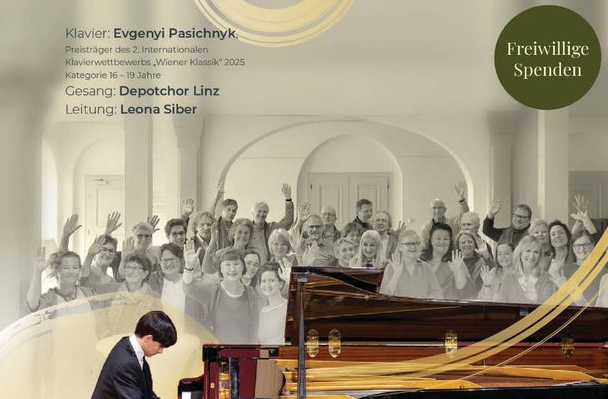 Der junge ukrainische Pianist Evgenyi Pasichnyk, Preisträger des 2. internationalen Klavierwettbewerbs “Wiener Klassik” 2025, Kategorie 16 - 19 Jahre, präsentiert sein Können in der Abschiedshalle das Barbarafriedhofs Linz, Friedhofstraße 1.