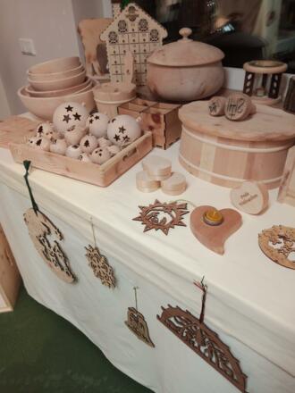 Zu sehen gibt's Bienenwachskerzen, Zirbenholzprodukte, Christbaumanhänger, Kosmetikartikel, Edelbrände, Krippen und vieles mehr!