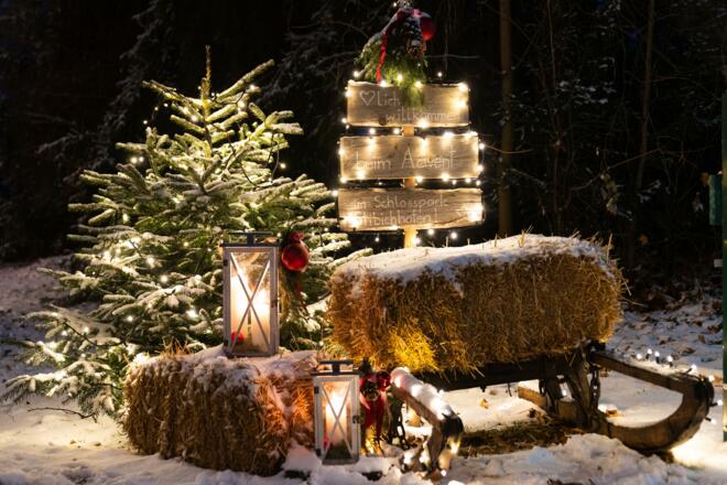 Zwischen funkelnden Lichterketten, duftenden Tannenzweigen und dem warmen Glanz zahlreicher Kerzen entfaltet sich auf dem Adventmarkt eine besonders stimmungsvolle Atmosphäre.